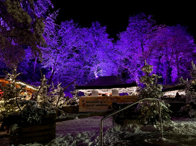 Dann sind wir zwischen 17.30 Uhr und 18 Uhr am Ziel. Wir genießen den Aufenthalt bei Dunkelheit mit hervorragender festlicher Beleuchtung, bei Glühwein und anderen flüssigen und festen kulinarischen Köstlichkeiten, dazu Live-Musik.